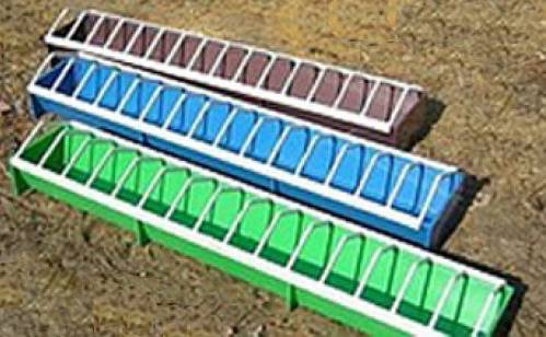 Esses bebedouros podem ser feitos de materiais de sucata, mas restrições de arame grosso devem ser instaladas para que as codornas não pulem nos bebedouros.