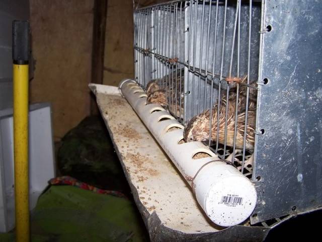 Codornizes têm o hábito de espalhar ração, então elas devem ter um comedouro com travas ou um comedouro externo e um coletor de ração embaixo dele.