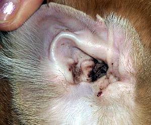 - a formação de crostas escuras no conduto auditivo do animal, conforme foto acima;