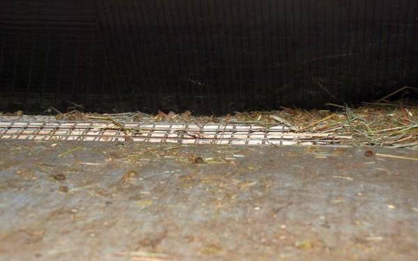 - Na parte inferior da moldura, o declive é equipado com a adição de uma tábua horizontal, após a qual é fixada contraplacado ou ardósia plana. Na parede posterior, ao longo de todo o seu comprimento, uma secção do pavimento é coberta por uma rede. As portas onde os comedouros ficarão pendurados também são cobertas por uma rede. Apenas a aba do licor-mãe é solidificada para evitar uma corrente de ar e eliminar o excesso de iluminação.