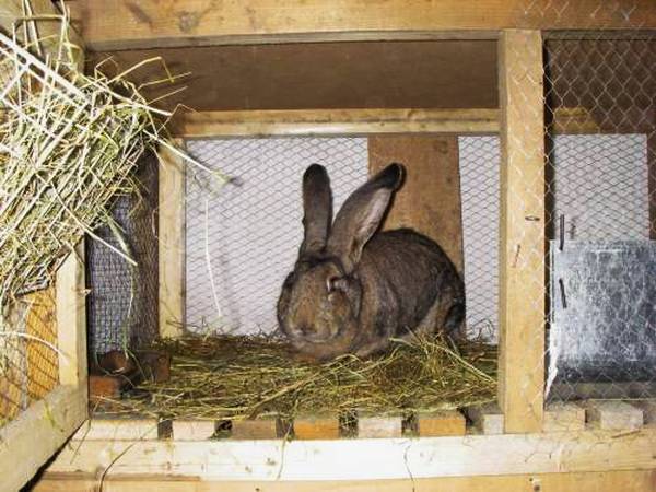 Os coelhos separados da fêmea são mantidos em gaiola coletiva até os três meses de idade. Além disso, os animais são divididos em indivíduos reprodutores e abatidos. Uma casa para coelhos jovens é feita de 2-3 m de comprimento, 0,6 m de altura e 1 m de largura. Os animais jovens são povoados por 6 a 10 cabeças. Os indivíduos reprodutores são agrupados com um máximo de 6 cabeças. A foto mostra uma gaiola de grupo com coelhos jovens.
