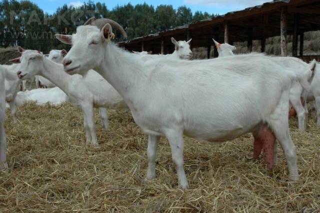 Raça grande predominantemente branca. Às vezes, eles podem ter uma tonalidade amarelada. Criado há 500 anos no Vale Saanenthal da Suíça. Ele apareceu na Europa apenas no final do século 19 e apareceu na Rússia no início do século 20. Posteriormente, esta raça de cabras, por ser a raça mais leiteira, espalhou-se por todo o país.