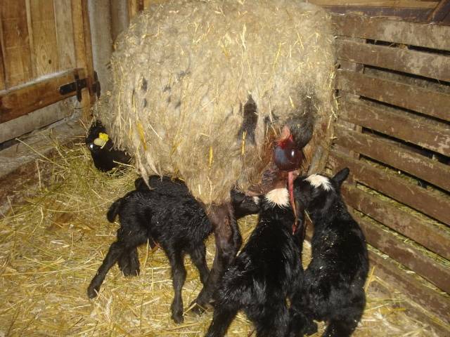 Romanovs cordeir facilmente se não houver complicações na posição das frutas. Com tal multiplicidade, os cordeiros nascem pequenos. Mas as ovelhas só conseguirão aderir sem problemas se os cordeiros não estiverem enrolados em uma bola dentro da ovelha. Isso acontece quando há vários cordeiros. Se isso acontecer, você terá que chamar um veterinário ou um criador de ovelhas experiente para descobrir quem é o dono de quais pernas e cabeças.