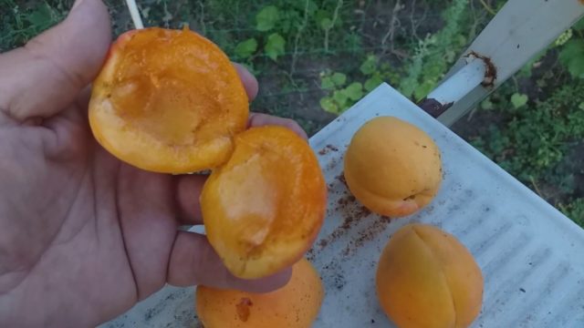 - o caroço é grande (7 a 8% do peso do damasco), tem o miolo amargo, por dentro é livre.
