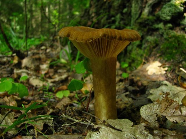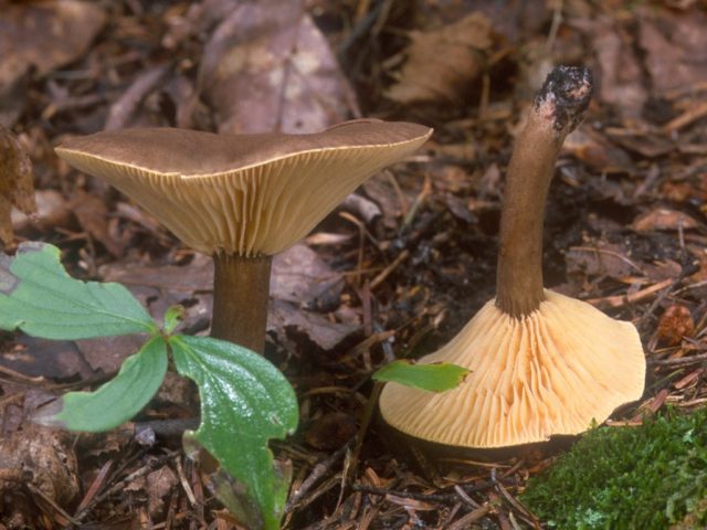 A perna da lactífera é preta resinosa, cilíndrica, afinando ligeiramente para baixo. Seu comprimento varia de 4 a 8 cm, e sua espessura chega a 1,5 cm de diâmetro. A estrutura é densa, em exemplares antigos é oca por dentro. A superfície é pubescente na parte inferior. Branco na base, marrom-marrom no topo.