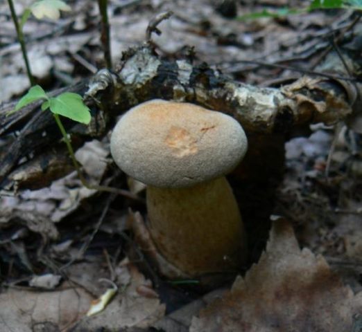 - A perna é de espessura média, seu comprimento é de 6 a 10 cm, a superfície é aveludada, clara no topo e escura perto do micélio. Pode ser plano ou ligeiramente engrossado na base ou no meio.