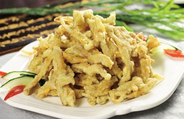 - Mergulhe os corais na massa preparada e frite em óleo vegetal.