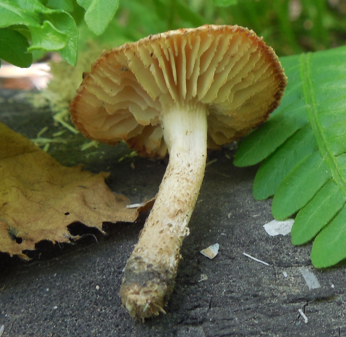 A perna cilíndrica atinge uma altura de 3 a 15 cm, o tamanho depende do local de crescimento. A superfície é coberta com uma pele cinza suja ou cremosa, numerosas escamas marrons são visíveis na base. A polpa é dura e fibrosa.