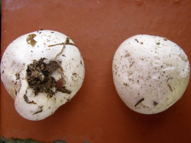 Os corpos de fruto são arredondados. Eles são pequenos em tamanho (1-3,5 cm de diâmetro). A perna da aba cinza-chumbo está ausente. O corpo esférico vai diretamente para o sistema radicular. Consiste em um micélio fino. Eles crescem em grupos.