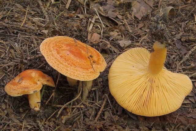 O cogumelo não comestível vermelho-amarelado ou amarelo-leucocitário assemelha-se ao real na estrutura, embora seja bastante diferente na cor. Se você quebrar a tampa de um leitoso âmbar, ele vai liberar um leite aguado que seca rapidamente ao ar.