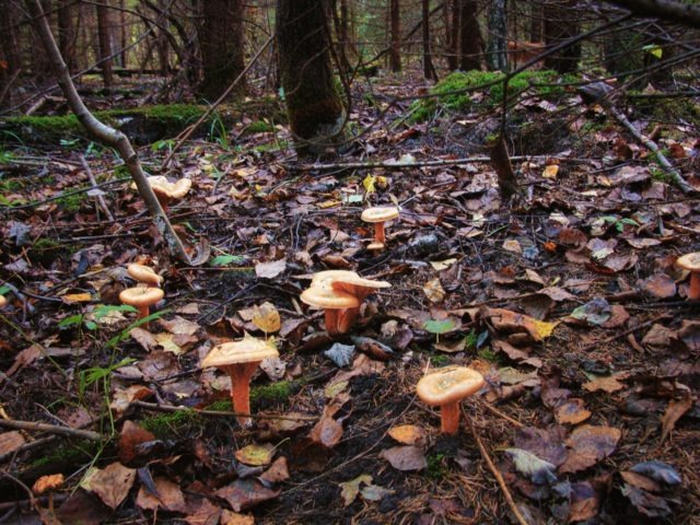 - em contraste com a onda, o corpo de frutificação da tampa do leite de açafrão no intervalo muda de cor, oxidando no ar;