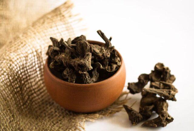 - 50 g de raiz triturada são despejados em 500 ml de vodka;