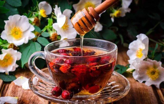 O chá de rosa mosqueta de maio é recomendado para uso com digestão lenta e imunidade enfraquecida. É feito de acordo com a seguinte receita: