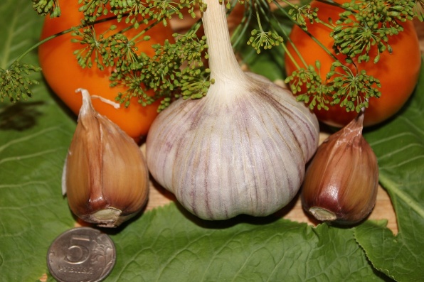 Mas o alho fresco desse tamanho não pode ser consumido de cada vez. E, neste caso, a dignidade se torna uma desvantagem. Se você precisa de fatias de tamanhos diferentes, a variedade de alho Cavalier é mais adequada.