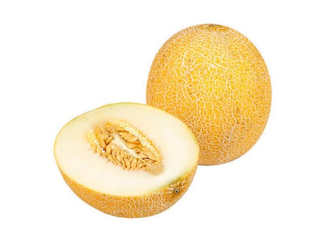 Os frutos são grandes, arredondados com polpa verde-esbranquiçada e casca amarelo-alaranjada. O melão da variedade Galia f1 tem críticas positivas, é famoso pelo seu excelente sabor e aroma.