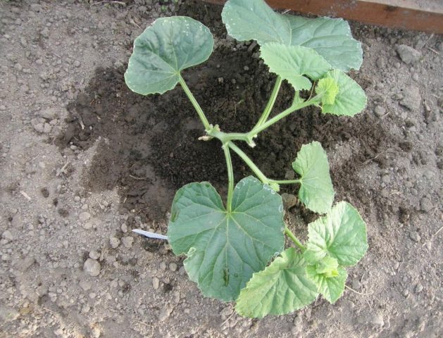 Os buracos para as mudas são cavados a uma profundidade de 5 - 7 cm, a distância entre eles é de 1,5 m (menos é impossível: a planta é melão, rasteja bem). Um pedaço de terra solto pode formar uma pequena colina, com não mais de 5 cm de altura. Antes do plantio, o solo deve ser regado com água morna.