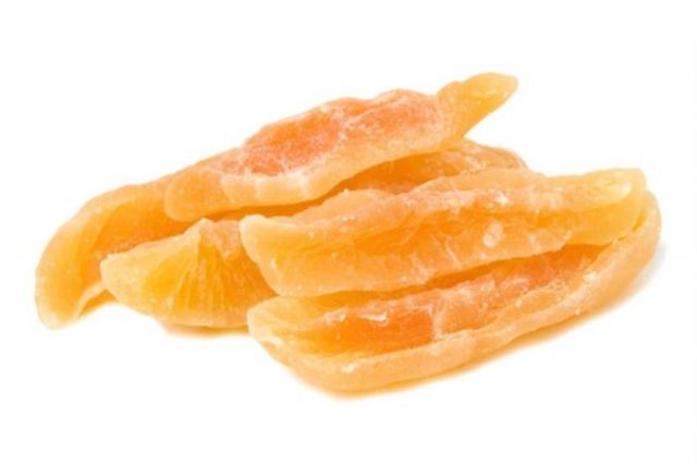A foto acima é melão seco. Este produto mantém a sua cor natural brilhante, o aroma característico do melão e é um excelente substituto para os doces artificiais.