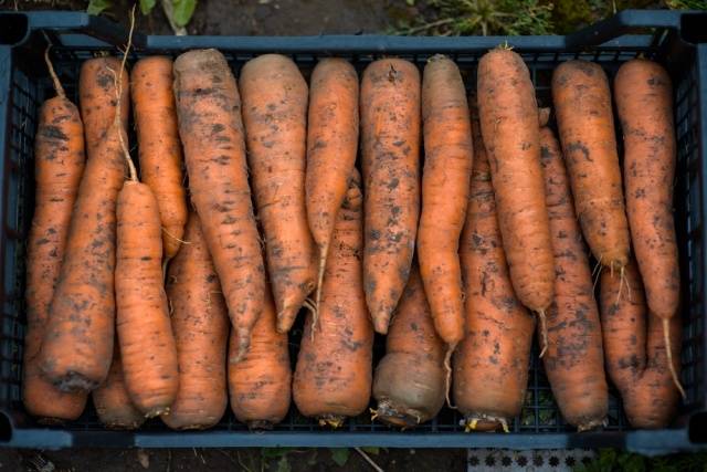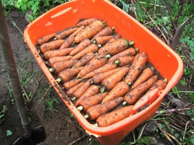 - colheita. Tempo colhendo cenouras diretamente relacionado à sua variedade. Notado, que as variedades intermediárias e tardias de tubérculos são mais adequadas para armazenamento no inverno em casa... Normalmente, essas cenouras são colhidas no final de agosto ou início de setembro, pois é nesta época que termina o aumento ativo da massa da raiz da safra. É melhor arrancar as cenouras puxando-as suavemente pela parte superior. Se o solo estiver muito seco e denso, você pode cavar o vegetal com uma pá.