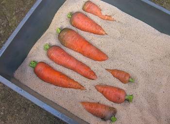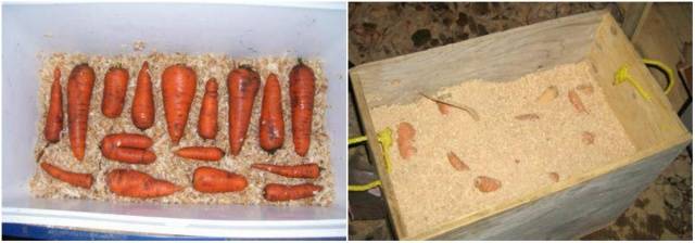 - Umidade no armazenamento também deve estar dentro da faixa normal: cerca de 65%. Só assim as cenouras permanecerão suculentas, não murcharão e não começarão a apodrecer e deteriorar. Para evitar a evaporação da umidade das raízes, as pontas das cenouras são cortadas e os vegetais também são trocados com materiais que consomem umidade (areia, serragem, etc.).