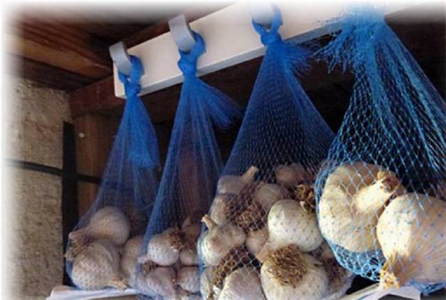Entre o grande número de ideias, os jardineiros identificam as mais convenientes para o alho de inverno. A colheita é armazenada usando: