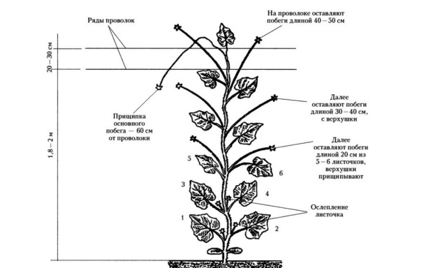 Os brotos de pepino em crescimento precisam ser pinçados a partir do momento em que atingem 50 cm de comprimento. Isso é feito da seguinte maneira: