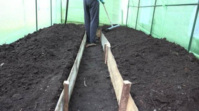 - O solo na estufa é removido por 5-10 cm para remover elementos desnecessários do solo de plantações anteriores.