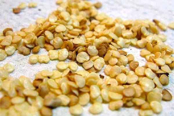 - Desinfecção de sementes... Como no caso da desinfecção do solo, este procedimento é necessário para que as plantas jovens não adoeçam com doenças bacterianas ou de putrefação. Para fazer isso, as sementes devem ser embebidas por 15-20 minutos em uma solução fraca de permanganato de potássio. Depois disso, eles devem ser enxaguados. Além disso, as preparações biofungicidas, por exemplo, "Fitosporin", podem ser usadas para desinfecção. Porém, após o tratamento com essas preparações, não é mais necessário enxaguar as sementes.