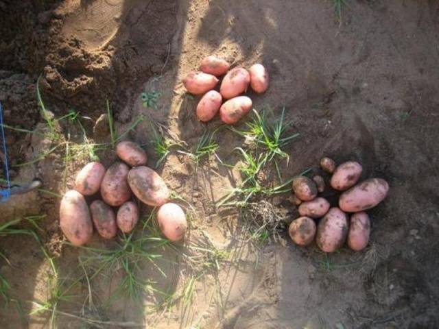 Se houver necessidade de selecionar alguns dos tubérculos colhidos para o plantio no próximo ano, eles precisam ser colhidos no campo. Para isso, as batatas de cada arbusto são empilhadas ao lado do buraco cavado. Deve secar um pouco: em um dia ensolarado - não mais do que 2 horas, e nublado - cerca de 4 horas.