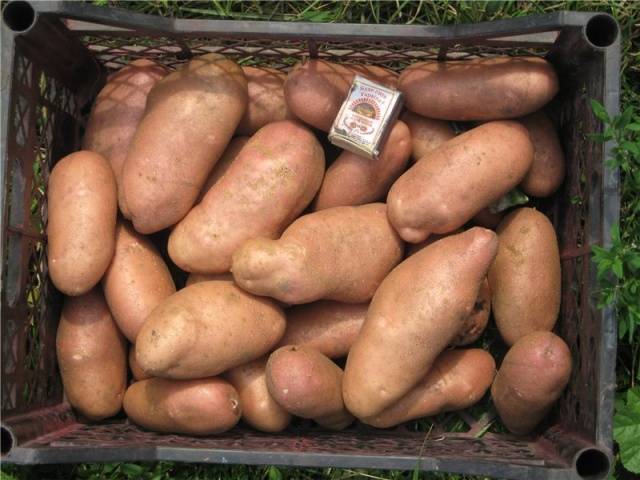 - a forma dos tubérculos é oblonga, achatada - externamente, as batatas lembram um sapato bastão de aldeia;