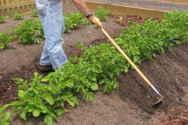 O solo ao redor dos arbustos de batata deve ser sempre macio para permitir que o ar alcance as raízes. Na primeira vez, as camas são afrouxadas 5-6 dias após o plantio dos tubérculos de batata Mozart. E o processo é repetido conforme necessário - assim que uma crosta seca se formar na superfície do solo.