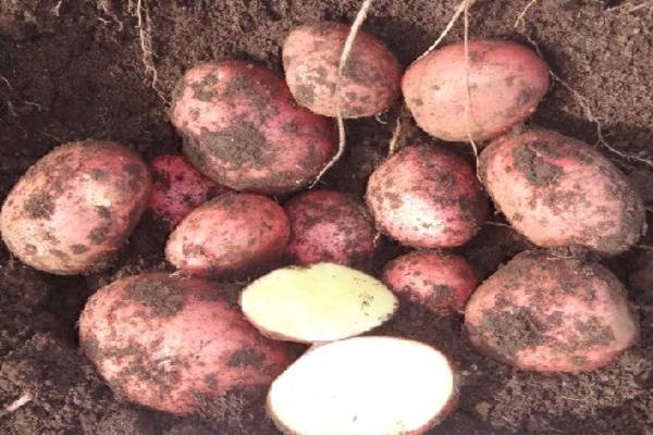 As culturas de raízes amadurecem 80-110 dias. Em um arbusto, são formadas 12-15 batatas pesando 100-145 G. A casca da variedade Mozart é vermelha e a polpa é amarela (como na foto). Segundo os residentes de verão, as batatas não são muito cozidas, têm um gosto bom e são adequadas para a preparação de pratos variados. O amido nas raízes das batatas Mozart está na faixa de 14-17%. Esta variedade é armazenada de forma excelente por um longo tempo (mantendo a qualidade de 92%).