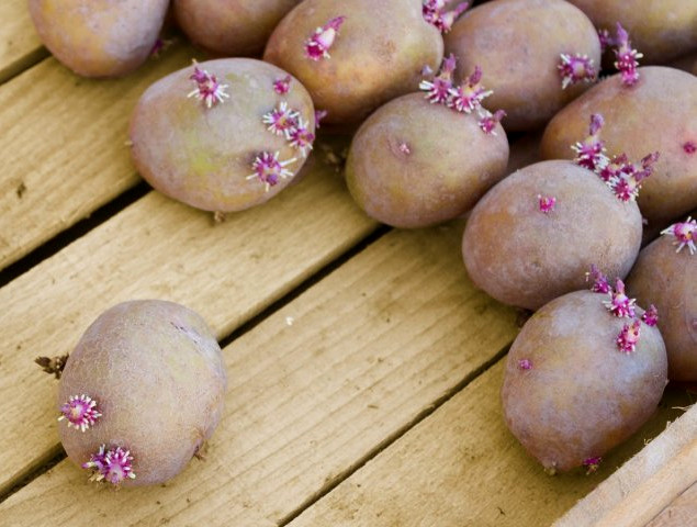 Para a germinação, são escolhidos tubérculos de tamanho médio. Quanto maior o número de olhos, melhor o rendimento. Mas cortar as batatas Lilac Mist para plantar ou não, cada um decide por si.