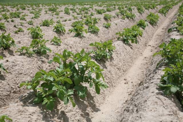 Para esses solos, o plantio em cristas é adequado. A sua peculiaridade é o corte preliminar de cristas com cerca de 20 cm de altura, onde são colocados os tubérculos da variedade Velikan e a seguir cobertos com terra.