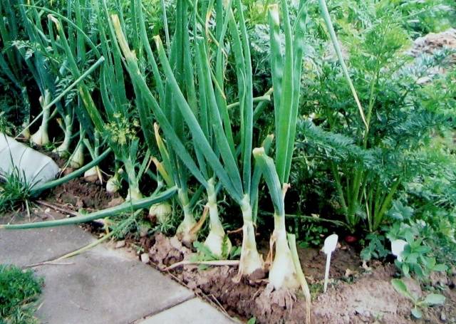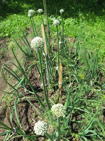 As cebolas plantadas toleram bem as baixas temperaturas. O sistema radicular dos bulbos está se desenvolvendo e a parte verde pode desacelerar um pouco no crescimento. Mas entre os jardineiros, há uma opinião de que muito cedo na primavera plantando cebolas leva à formação de flechas no futuro. Essas lâmpadas são mal armazenadas e têm uma apresentação feia.