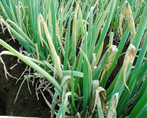 - Fusarium se manifesta na podridão da parte inferior do bulbo e na morte da raiz. Medidas de controle: tratamento das plantas com infusão de cinzas, compra de material de plantio de alta qualidade e seu preparo antes do plantio.