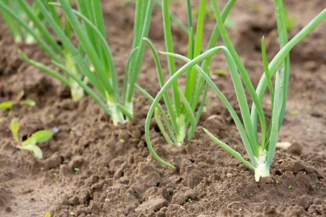Os fertilizantes são aplicados no outono. Na primavera, o solo é desenterrado para o plantio de cebolas, livre de ervas daninhas, é nivelado.