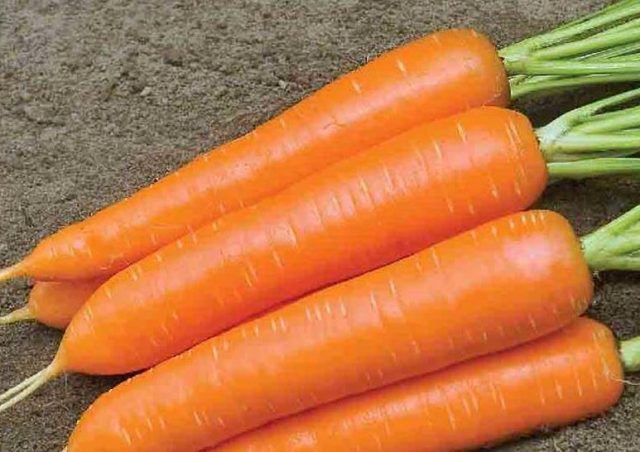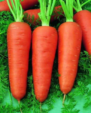Variedade de meia estação com raízes relativamente pequenas. O comprimento da cenoura é de 15 cm, o peso médio é de 100 G. A raiz da colheita está completamente submersa no solo, tem uma roseta de folhas semi-ereta. A cor é laranja, saturada. A polpa é suculenta, macia.