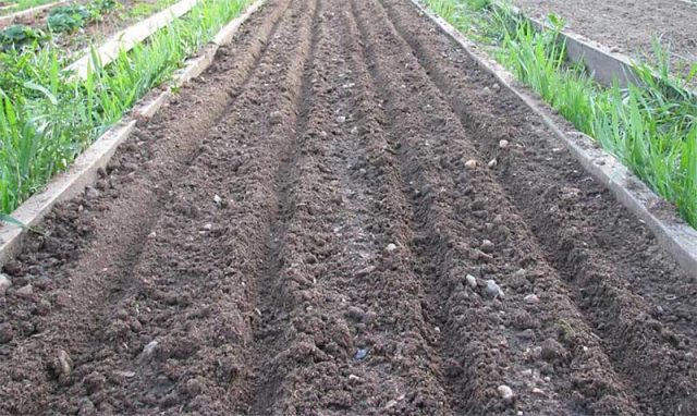 Quando chega a hora do plantio, as sementes são semeadas nas ranhuras preparadas. Polvilhe as sementes por cima com terra seca peneirada por uma peneira.