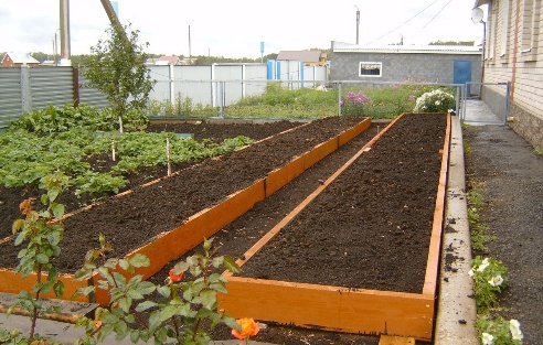 Os canteiros para as cenouras são altos para que a água não fique estagnada ali na primavera. A altura das camas acima do nível do terreno é de pelo menos 10-15 cm.