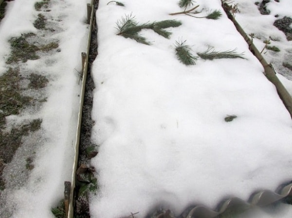 Após o início da geada, a estrutura do solo muda e tal terreno não é adequado para abrigar material de plantio. A terra seca peneirada é armazenada em uma caixa em um local aquecido. A cama acabada é coberta com material isolante e deixada até a primavera.