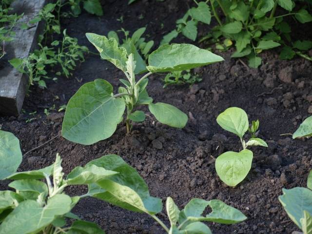 O solo em que as mudas de berinjela são plantadas é preparado com antecedência. Certifique-se de manter o padrão ideal para a variedade e densidade de plantio.