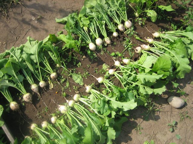 A boa qualidade de conservação do rabanete japonês depende da qualidade da colheita. As raízes desenterradas, que ficarão armazenadas por vários meses, são deixadas no jardim por 4-5 horas para que a terra sobre a pele seque. Se o dia estiver quente e ensolarado, transfira os vegetais para um local à sombra para secar. Em seguida, o solo é sacudido suavemente e removido, mas não com uma ferramenta afiada. Melhor limpar com um pano. Os topos são cortados, deixando os topos com até 2,5 cm de comprimento. As culturas de raízes que atendem aos seguintes requisitos são armazenadas: