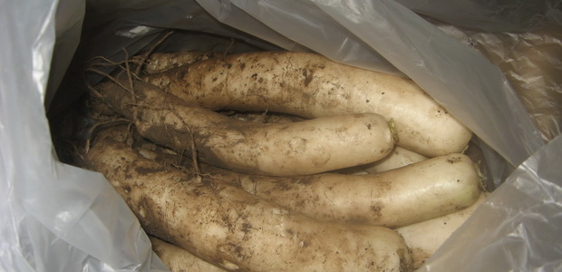 Se você for armazenar as raízes em uma geladeira doméstica, elas também não serão lavadas. O rabanete japonês é deixado por 4-5 horas para secar os pedaços de terra, que são então sacudidos à mão ou limpos com um material macio. As raízes preparadas são colocadas em sacos plásticos perfurados para garantir a circulação do ar.