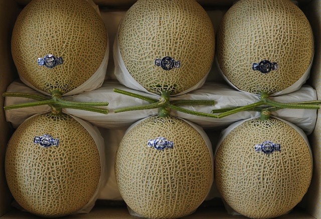 No Japão, costuma-se oferecer iguarias para vários feriados. Esse presente real atesta o bem-estar material do doador, o que é importante para os japoneses. Os melões são normalmente comercializados em 2 peças, com uma parte do caule que não é totalmente cortada.