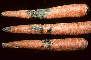 As cenouras afetadas por este fungo não devem ser armazenadas. Durante o período de permanência no solo, um sinal de dano às plantas está escurecendo e morrendo na parte inferior das folhas. As próprias folhas ficam amarelas.