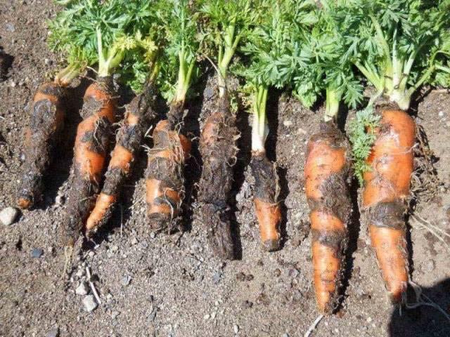 A "Rainha do Outono" cresce muito mal em solo pesado, a colheita é nojenta e as cenouras não são saborosas. "Canadá" é adequado para o pesado, um excelente resultado.E para que a cenoura não machuque nada e a mosca da cenoura não a coma, é necessário derramar 2-3 vezes por temporada, com intervalo de 20 dias, a partir de 1º de junho, com tal composição - por 10 litros de água - 0,5 colher de chá de ácido bórico (dissolver separadamente em água quente) +0,5 colher de chá. permanganato de potássio. Derrame depois de regar bem nos corredores. Isso é alimentação e controle de pragas e doenças. beterrabas também são possíveis.