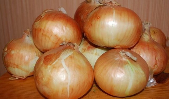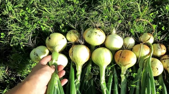 As cebolas colhidas e secas são separadas, verdes e as cebolas com um pescoço fino e suculento são consumidas primeiro, uma vez que não serão armazenadas por muito tempo.