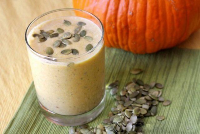 Você também pode fazer um delicioso coquetel com leite de abóbora - um smoothie de frutas que irá beneficiar sua digestão. A prescrição requer: