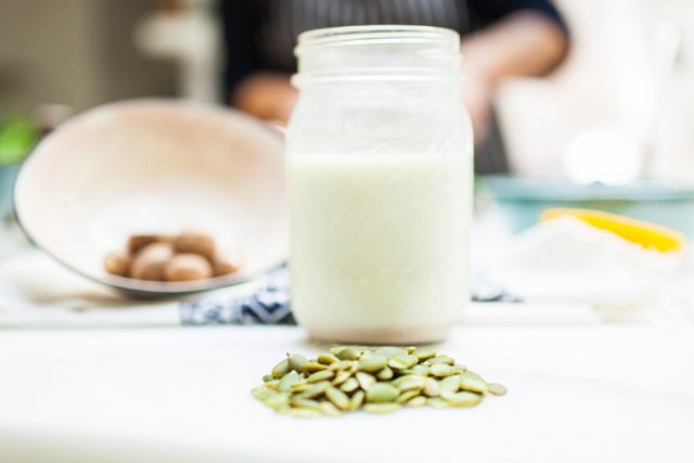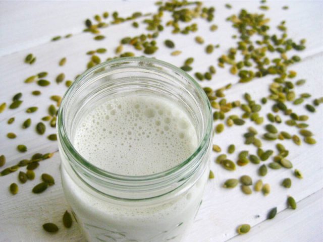 Para preparar o leite, você precisa de 1 xícara de sementes de abóbora com casca e 4 xícaras de água potável. O procedimento para preparar uma bebida é o seguinte: