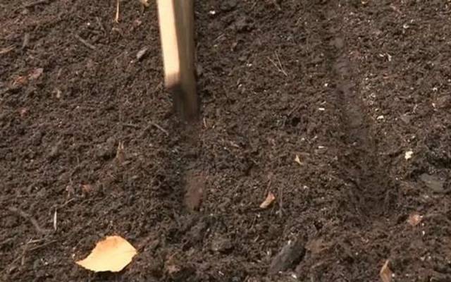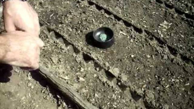 A semeadura é concluída enchendo os sulcos com sementes de cenoura semeadas com composto aquecido preparado. O composto é solto, então os sulcos são polvilhados com uma colina, e então cuidadosamente batidos com uma tábua larga com uma alça, para que a compactação ocorra por igual. O cume é polvilhado com uma leve camada de cobertura morta imediatamente após o plantio das cenouras.